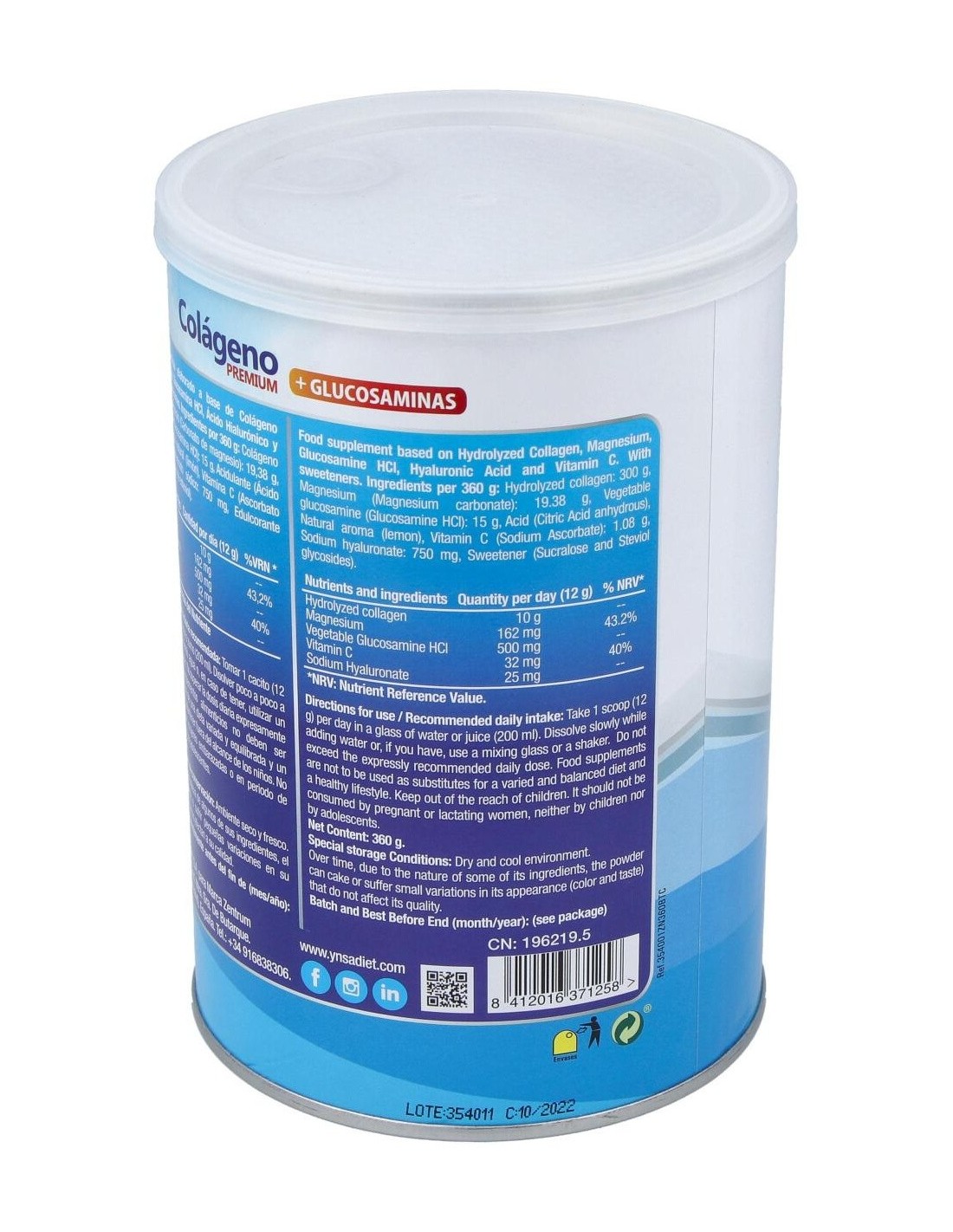 Colágeno Premium Hidrolizado 360 Gr de Ynsadiet
