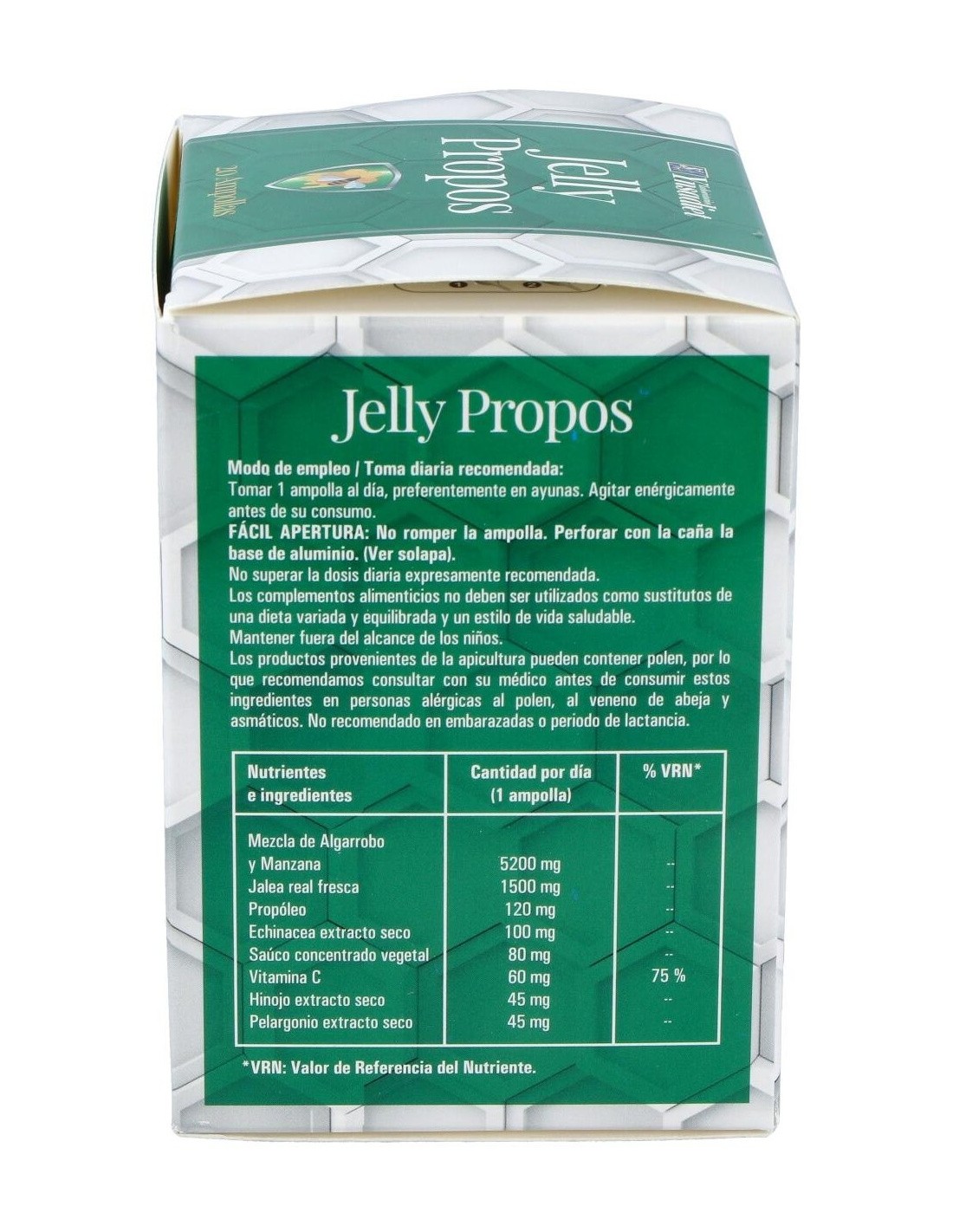 JALEA REAL FRESCA (1.500 MG), PROPÓLEO (100 MG), VITAMINA C (60 MG).